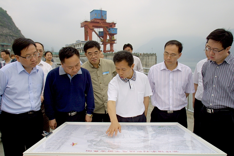 時(shí)任水利部副部長(zhǎng)李國(guó)英(現(xiàn)任水利部部長(zhǎng))赴紫坪鋪水利樞紐工程檢查指導(dǎo)防汛工作